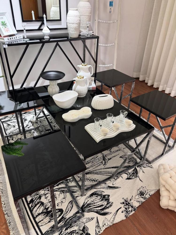 طاولة قهوة ذهبية هو الخيار المثالي لأي منزل أو مكتب، يجمع بين التصميم العصري والوظيفية العالية. يتضمن طاولة كبيرة مع طاولات خدمة صغيرة، مما يوفر لك مساحات إضافية بطريقة أنيقة ومتكاملة.