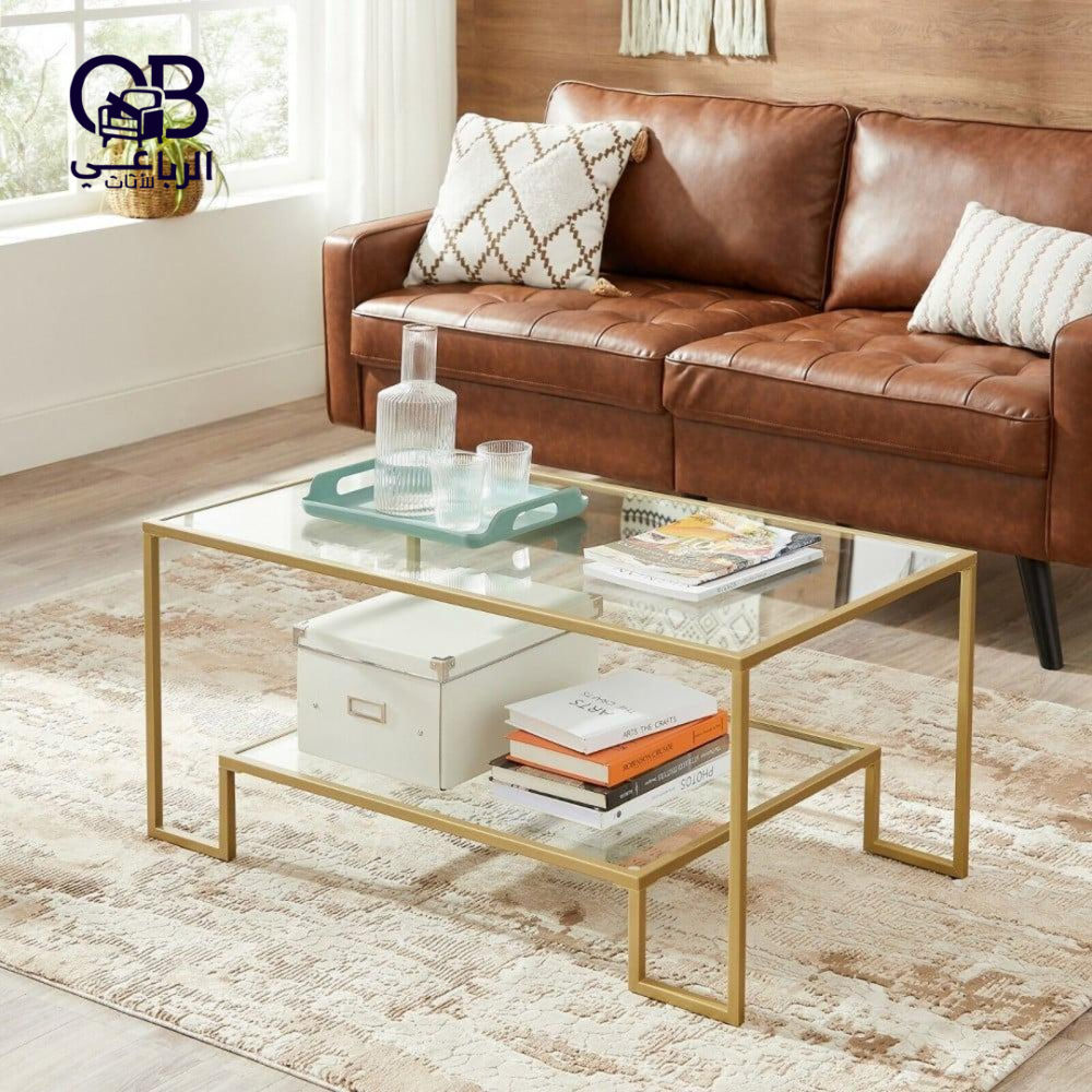 - طاولة وسط برفين زجاج تتميز بتصميم عصري أنيق يناسب مختلف الأذواق.