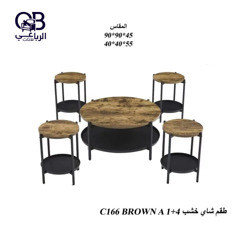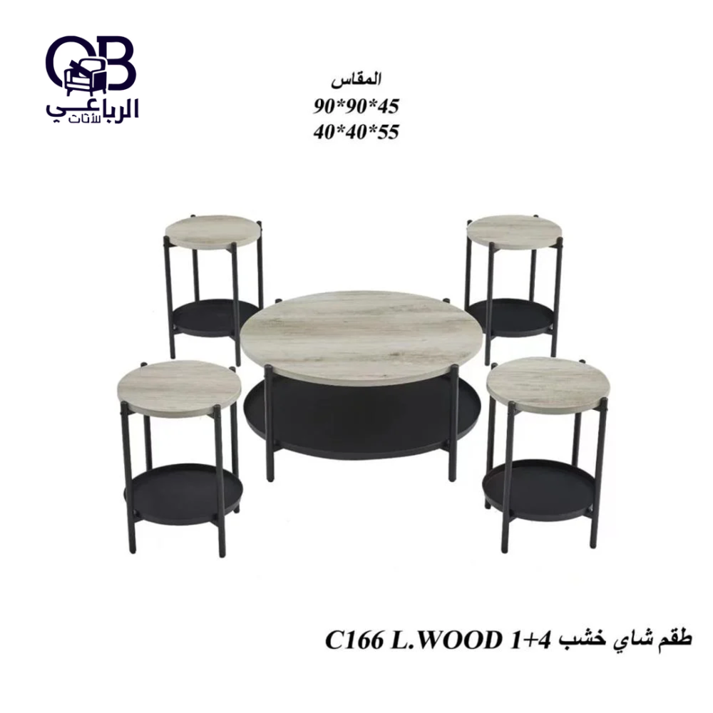 - اسم المنتج: طقم طاولات شاي خشب وزجاج دائري 5 قطع تجمع بين الأصالة والعصرية