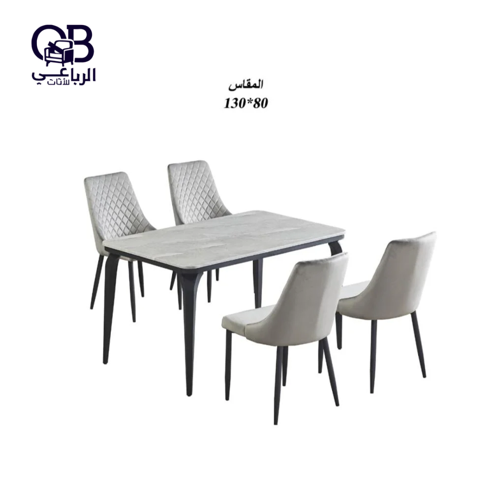 - اسم المنتج: طقم طاولة طعام 4 مقاعد بقواعد معدن وسطح رخام