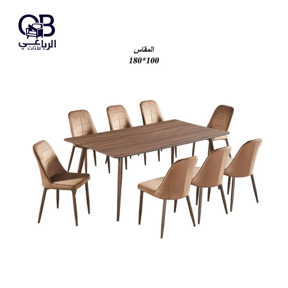 طقم طاولة طعام 8 كراسي بتصميم عصري يجمع بين الخشب الفاخر والقاعدة المعدنية القوية، مع 8 كراسي مريحة مغطاة بالقماش. إنها الخيار المثالي لإضفاء لمسة من الفخامة والراحة على غرفة الطعام لديك، مع أبعاد مثالية تناسب مختلف المساحات.